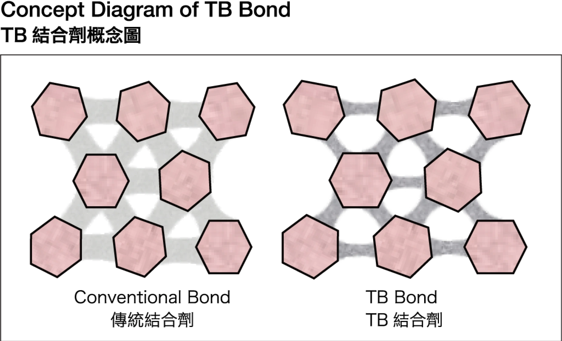 TM bond has improved strength from conventional bond, so we can make grinding wheel of same hardness grade with small amount of bond. Friction between bond and work piece is less, performance of grain is maximized. TM is applicable to fused alumina grains only. Combinations with CS series are good choice to start with.
