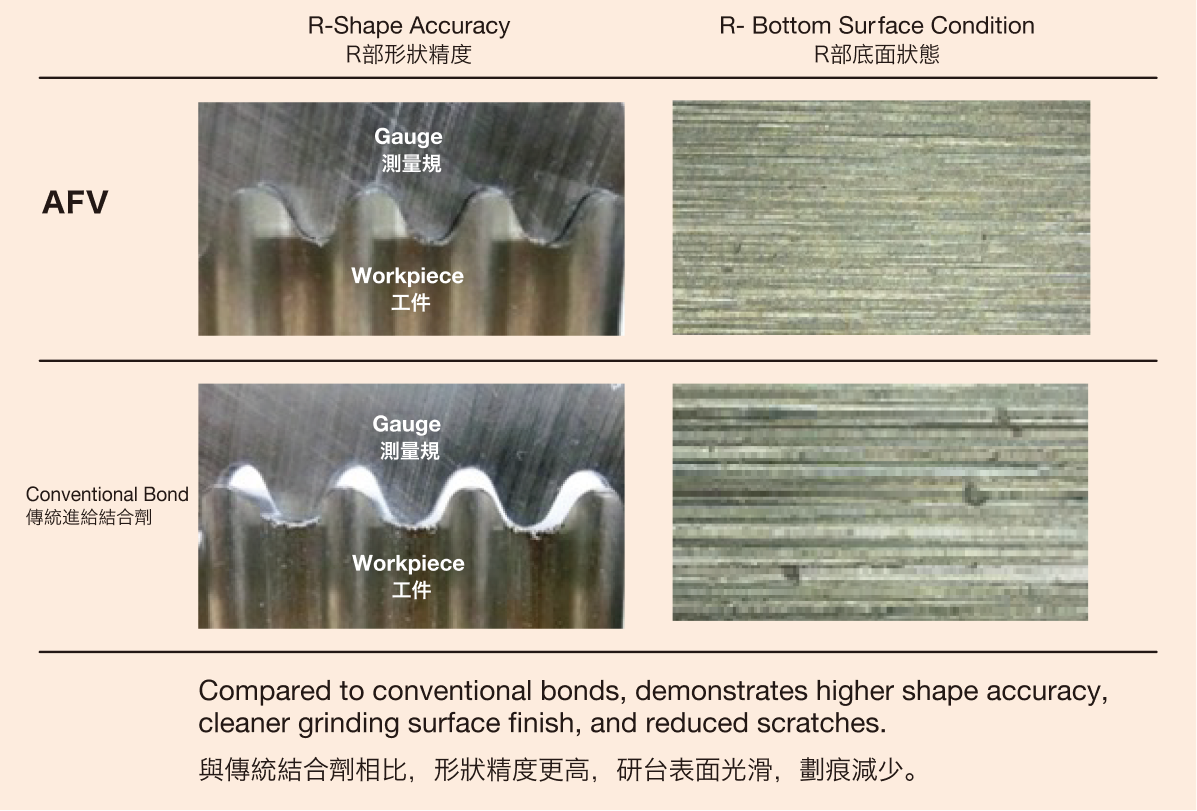 - BEX bond holds grains strongly, so the wheel life is longer than ordinary resin bond.